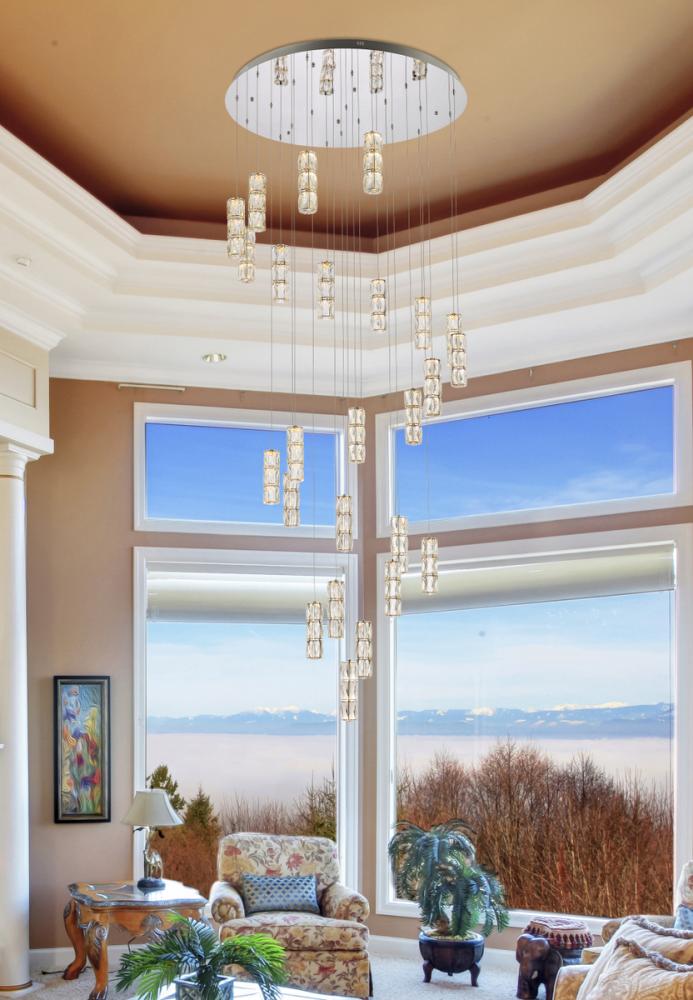 This chandelier is specially designed to be used on sloped ceilings, allowing you to install it in rooms with angled or vaulted ceilings. It ensures that you can enjoy the stunning crystal faceted design and warm LED lighting in any area of your home.
