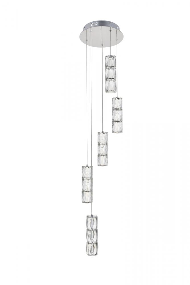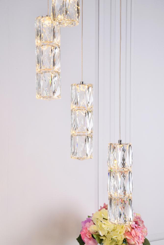 The Polaris collection is the epitome of "cool" in lighting, because each of the fixtures has rectangular, elegant-cut crystals that look like ice cubes, gracefully suspended from a stainless-steel base with a bright chrome finish. Designed for rooms with higher ceilings, these fixtures are definitely stylistic attention-getters.