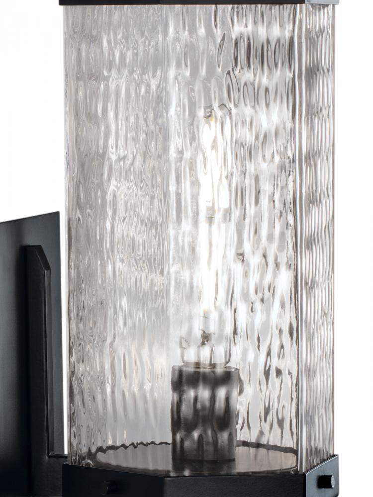 Unique outdoor fixture with six sided, wavy glass, with matte black finish