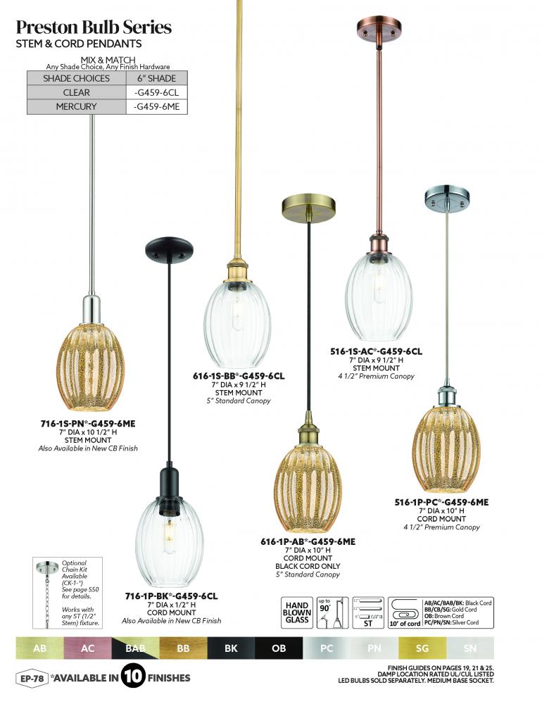 The Edison collection is comprised of heavy cast components that give the fixture a sturdy transitional look. We offer the fixture in 9 finishes with a Bare Bulb look or with over 100 possible metal and glass shade options that can change the style to fit