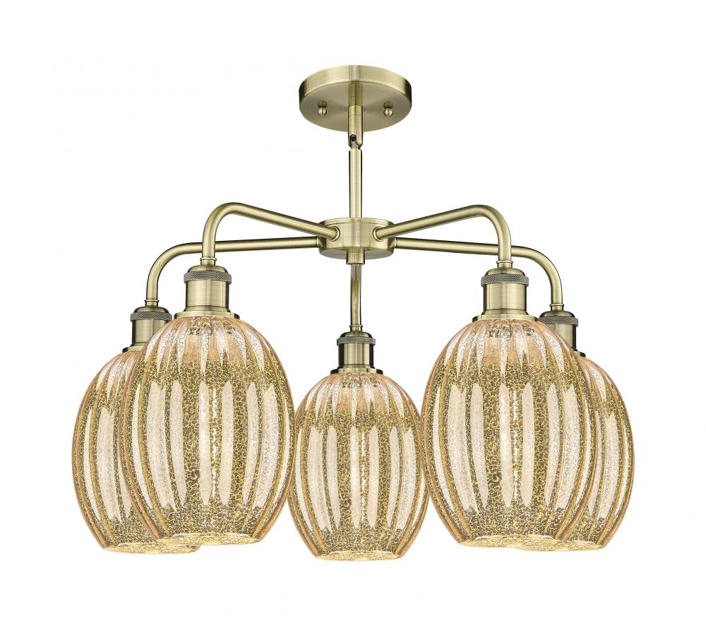 Preston Bulb - 5 Light - 25 inch - Antique Brass - Mercury Preston Bulb shade - Stem hung - Chandelier