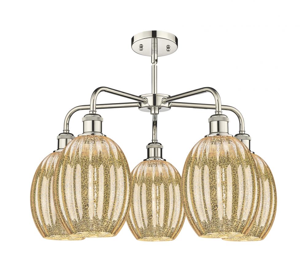 Preston Bulb - 5 Light - 25 inch - Polished Nickel - Mercury Preston Bulb shade - Stem hung - Chandelier