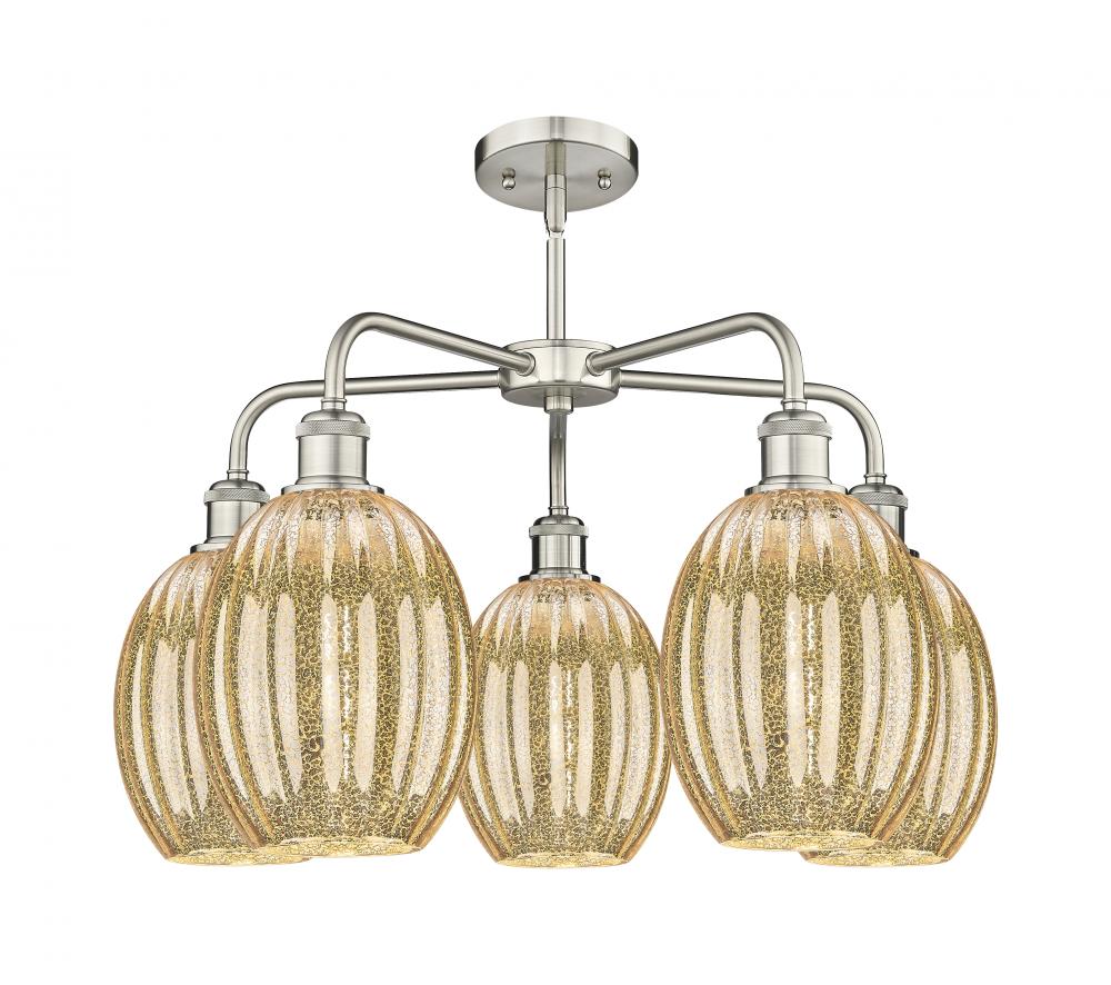 Preston Bulb - 5 Light - 25 inch - Satin Nickel - Mercury Preston Bulb shade - Stem hung - Chandelier