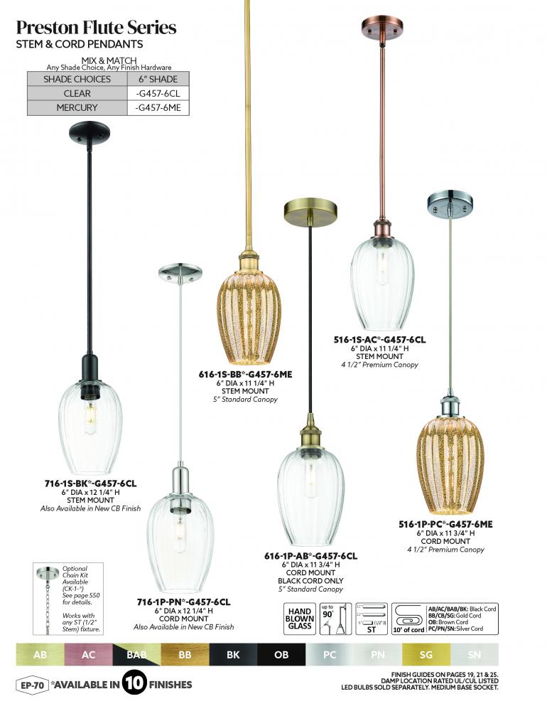 Preston Flute - 1 Light - 6 inch - Antique Brass - Mercury Preston Flute Shade - Mini Pendant