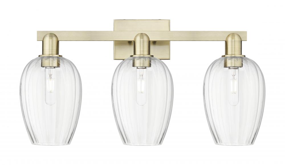 Preston Flute - 3 Light - 26 inch - Antique Brass - Clear Preston Flute Shade - Bath Vanity Light
