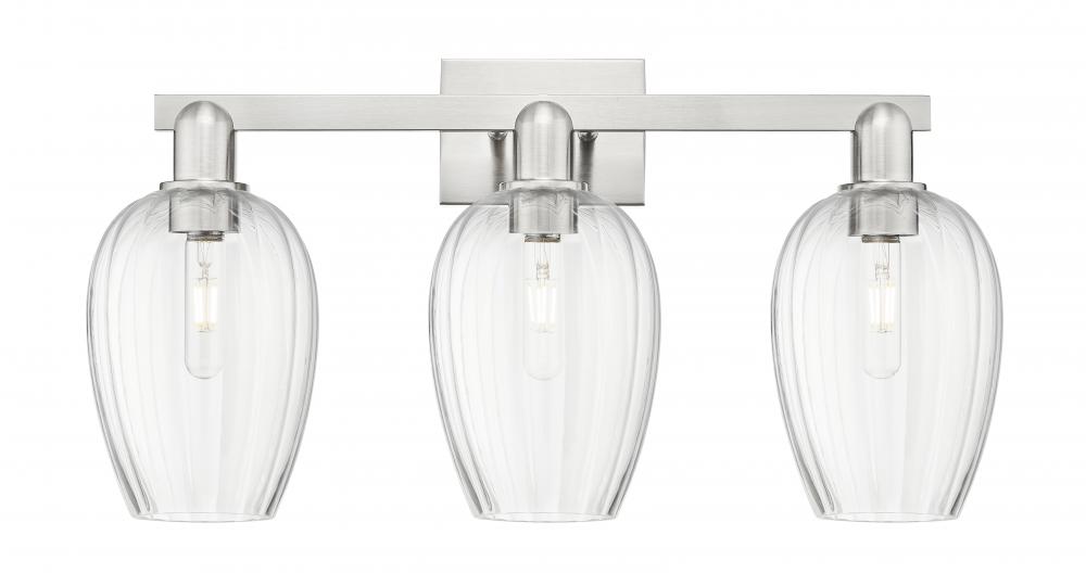 Preston Flute - 3 Light - 26 inch - Brushed Satin Nickel - Clear Preston Flute Shade - Bath Vanity Light