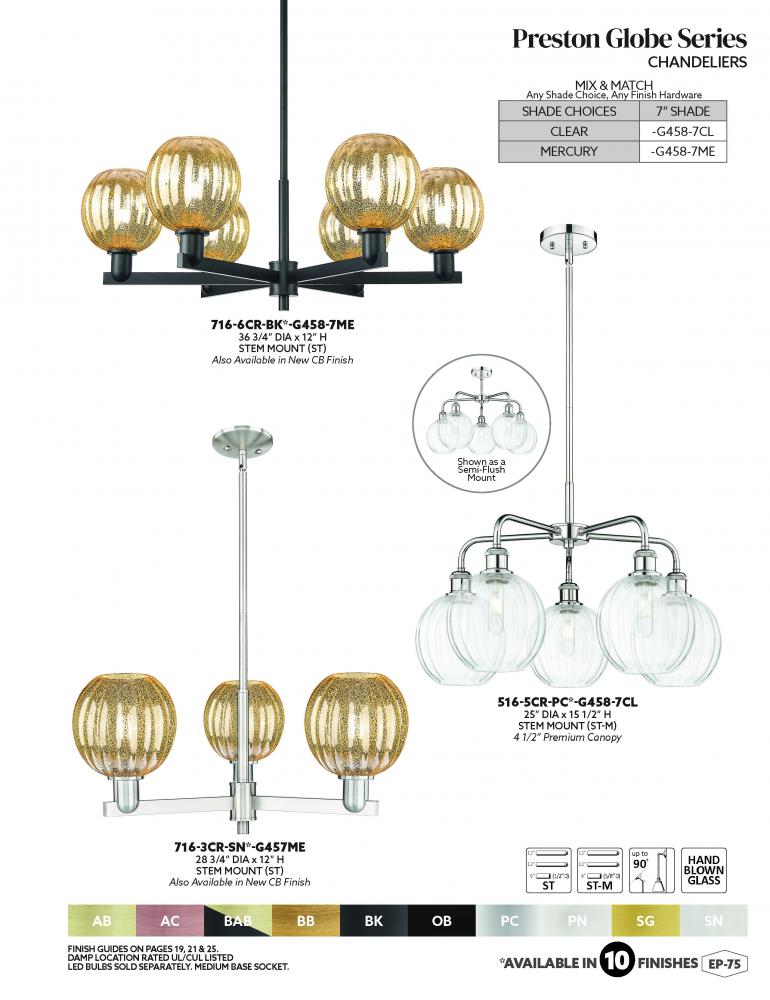 Preston Globe - 6 Light - 24 inch - Antique Brass - Mercury Preston Globe Shade - Chandelier
