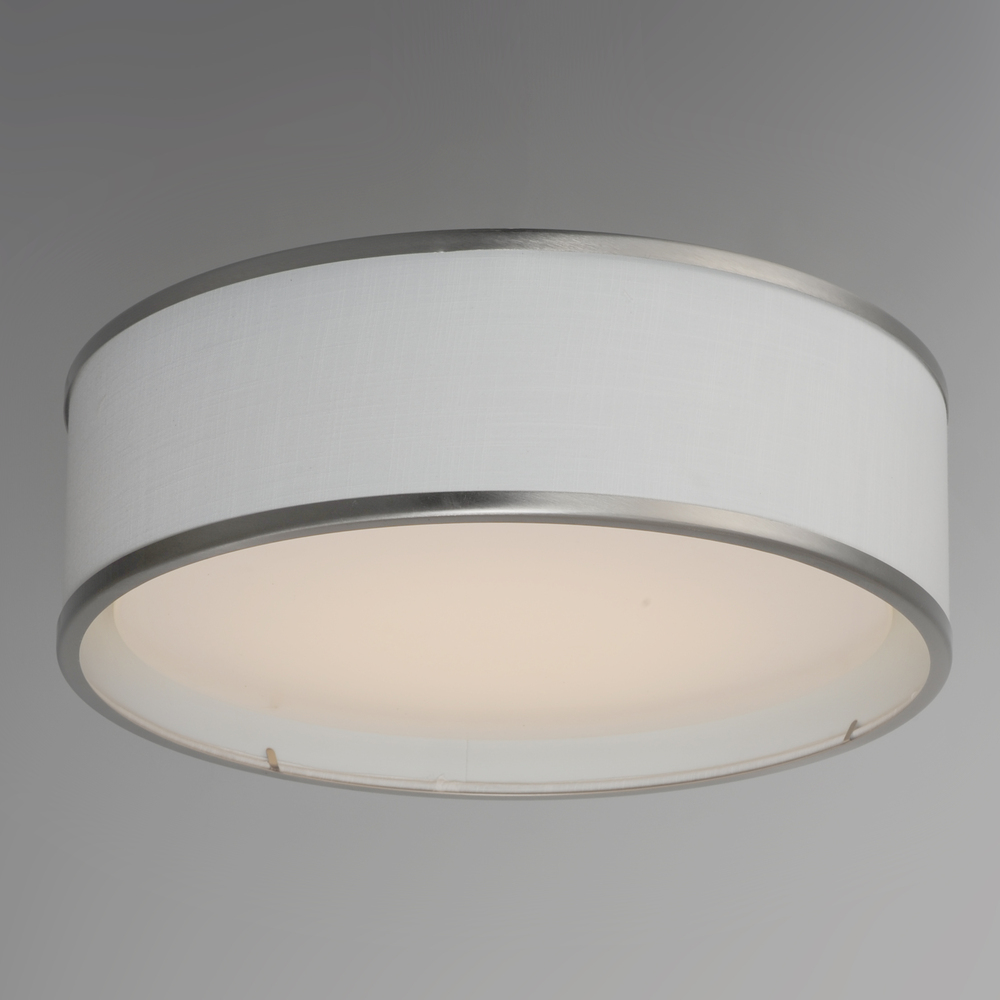 Drum shades in a variety of fabrics and materials are a core lighting offering. Flush mounts, pendants, and ADA sconces are available in options of linen, organza, grasscloth, and sound absorbing grey felt shades. An internal acrylic diffuser, illuminated