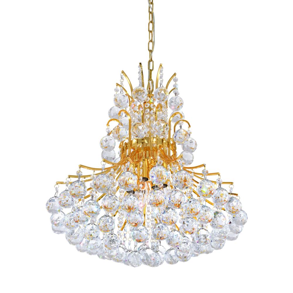 Replacing your existing living room lighting with the Princess 8 Light Chandelier is enough to make a big change in your space. This showy down chandelier measures 21 inches tall and 20 inches wide. It is designed with a gold-finished metal frame in a grac