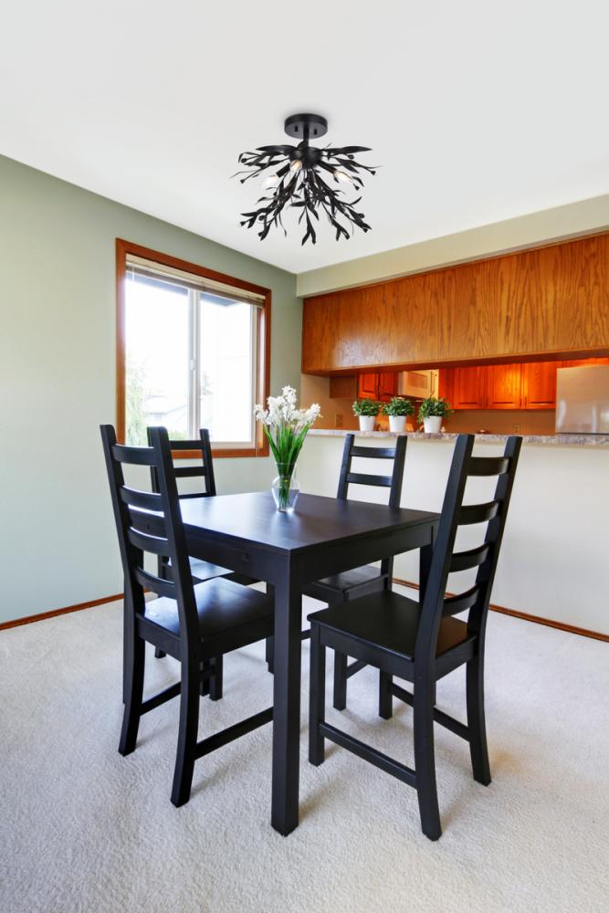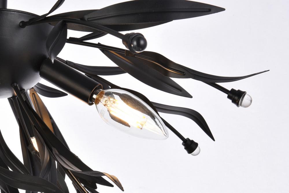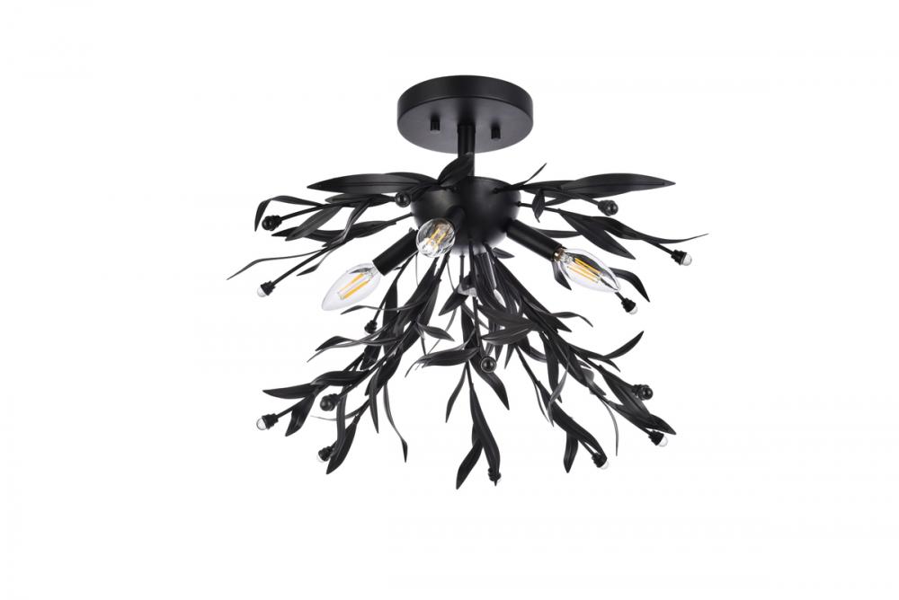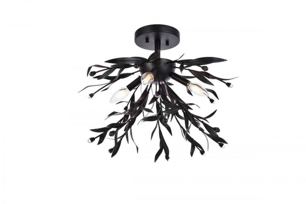 This 4 light semi-flush mount is sure to add a nice focal point in your space. The circular canopy, small downrod, and sockets are made from metal of your choice of finish. It features several leaf branches tipped with clear crystal bead. This fixture takes four 40W bulbs, (not included) that wash your space in a bright glow. It's compatible with a dimmer switch, so you'll always have the right amount of light no matter the time of day.