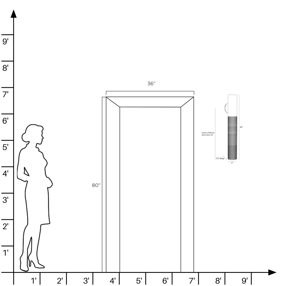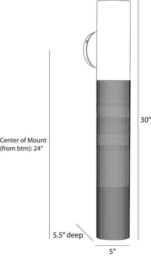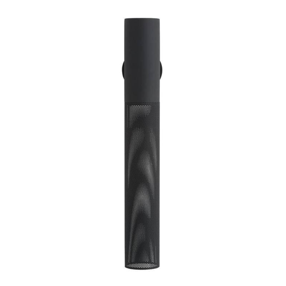 The Punch large outdoor sconce is a subtle, linear option for exterior spaces, now in a new matte black finish. A perfect pairing of solid and perforated marine grade matte black steel cylinders on a rounded mounting plate, Punch casts a diffuse downward glow. A protective coating helps withstand the elements.