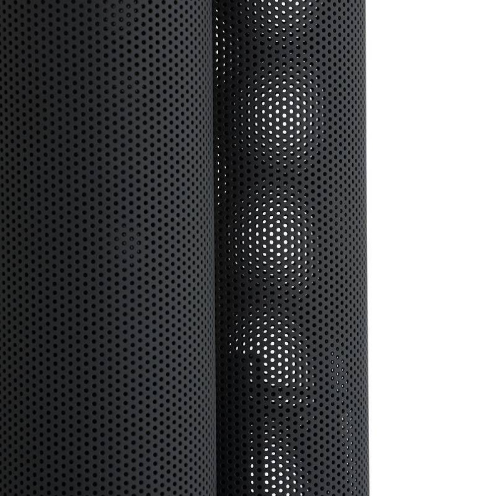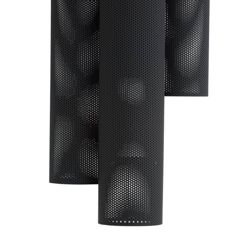 This oversized outdoor style features a trio of perforated marine grade black matte steel cylinders to illuminate and elevate exterior spaces. Each of the cylinders contains bi-directional lights to cast an upward and downward glow. A protective coating helps withstand the elements.