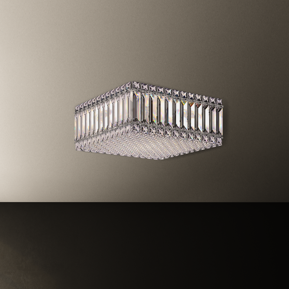 Quantum 4 Light 120V Flush Mount in Polished Stainless Steel with Clear Crystals from Swarovski