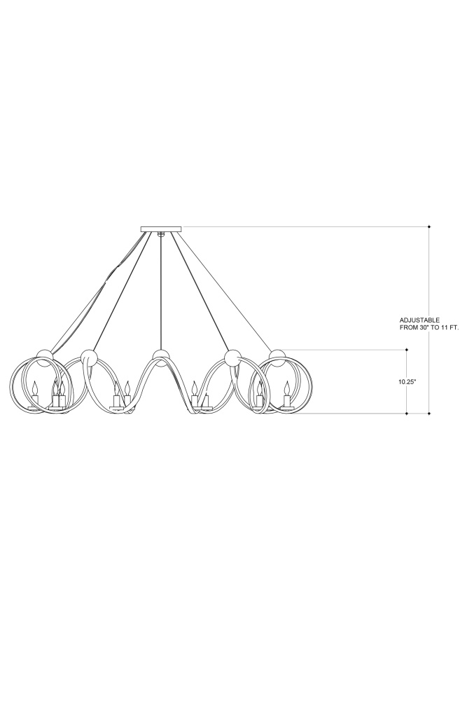 Blown glass balls flowing along the arcing arms of the Quantum Chandelier turn this classic fixture into something special. The delicate wrought iron frame on the silver chandelier in a contemporary silver leaf finish enhances the glow of the shimmering glass baubles. Adjustable from 34.5" to 102.5" with use of included chain/rod kit/cable. If your space calls for a longer drop, additional chain/rods/cable is available for purchase.