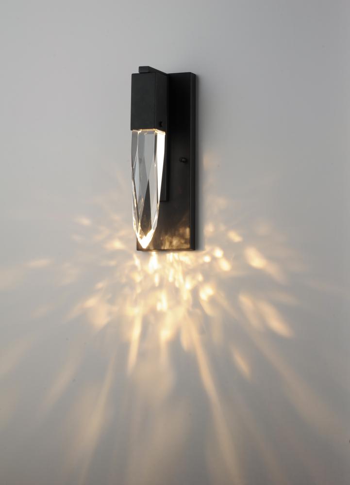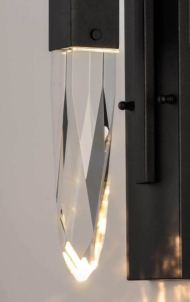 Stalactites of Clear Beveled crystal suspend from your choice of Polished Chrome or Black supports, can be hung at various heights to create a spectacular array. The crystal shimmers as light diffuses through the facets powered by 90 CRI LED dimmable modul