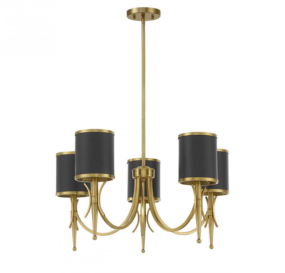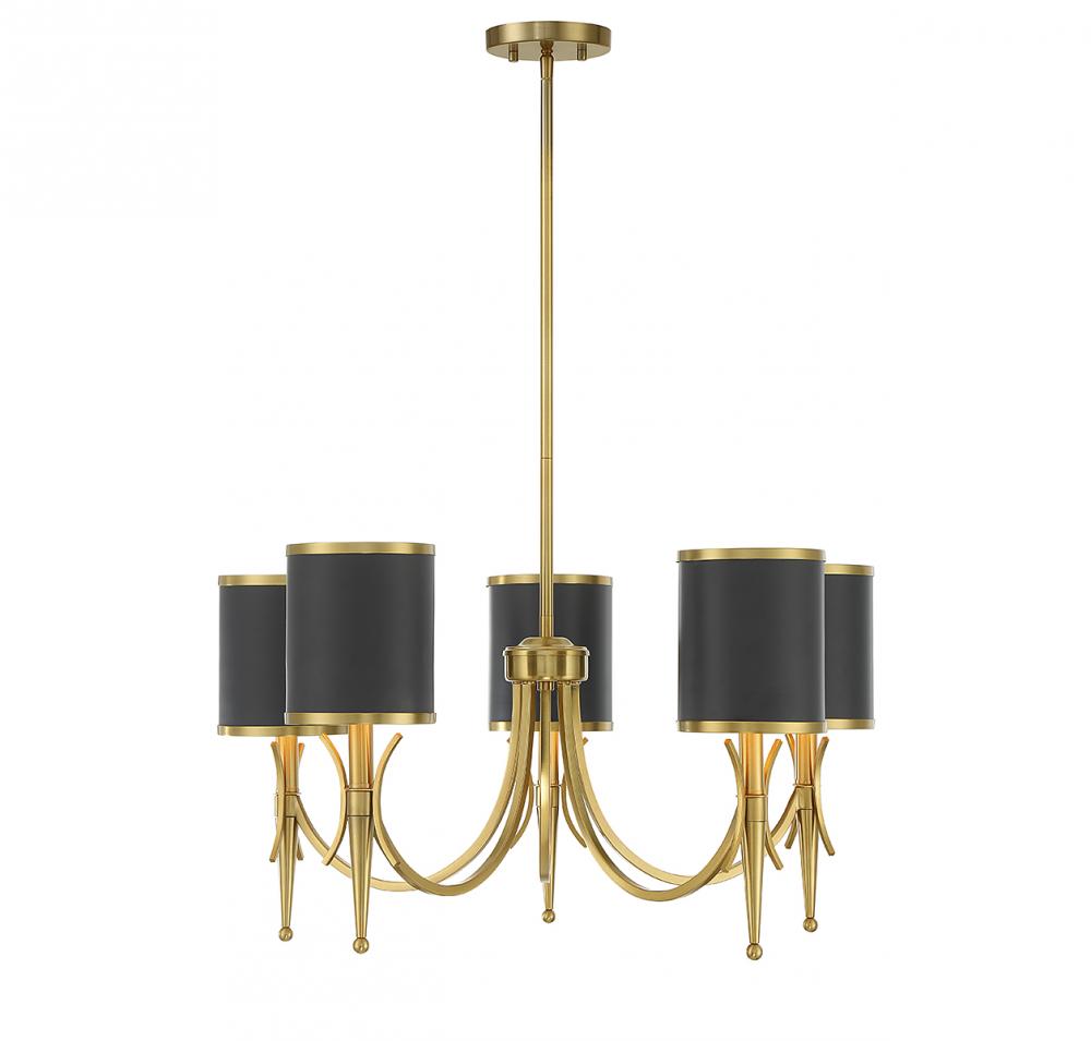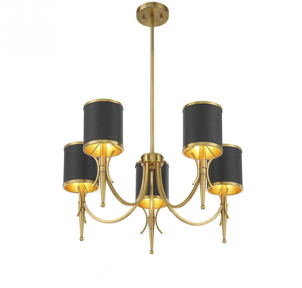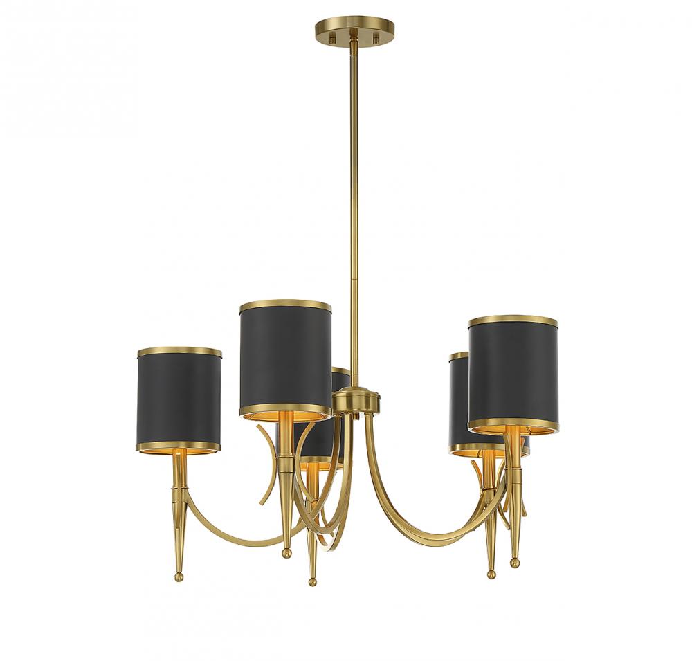 Quincy 5-Light Chandelier in Matte Black with Warm Brass Accents