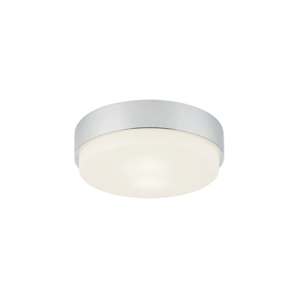 The white glass shade extending beyond the metal frame of the Quintz is a twist on a traditional ceiling mount. It comes in 3 finishes: Aged Gold Brass, Chrome and Matte Black and 2 sizes.