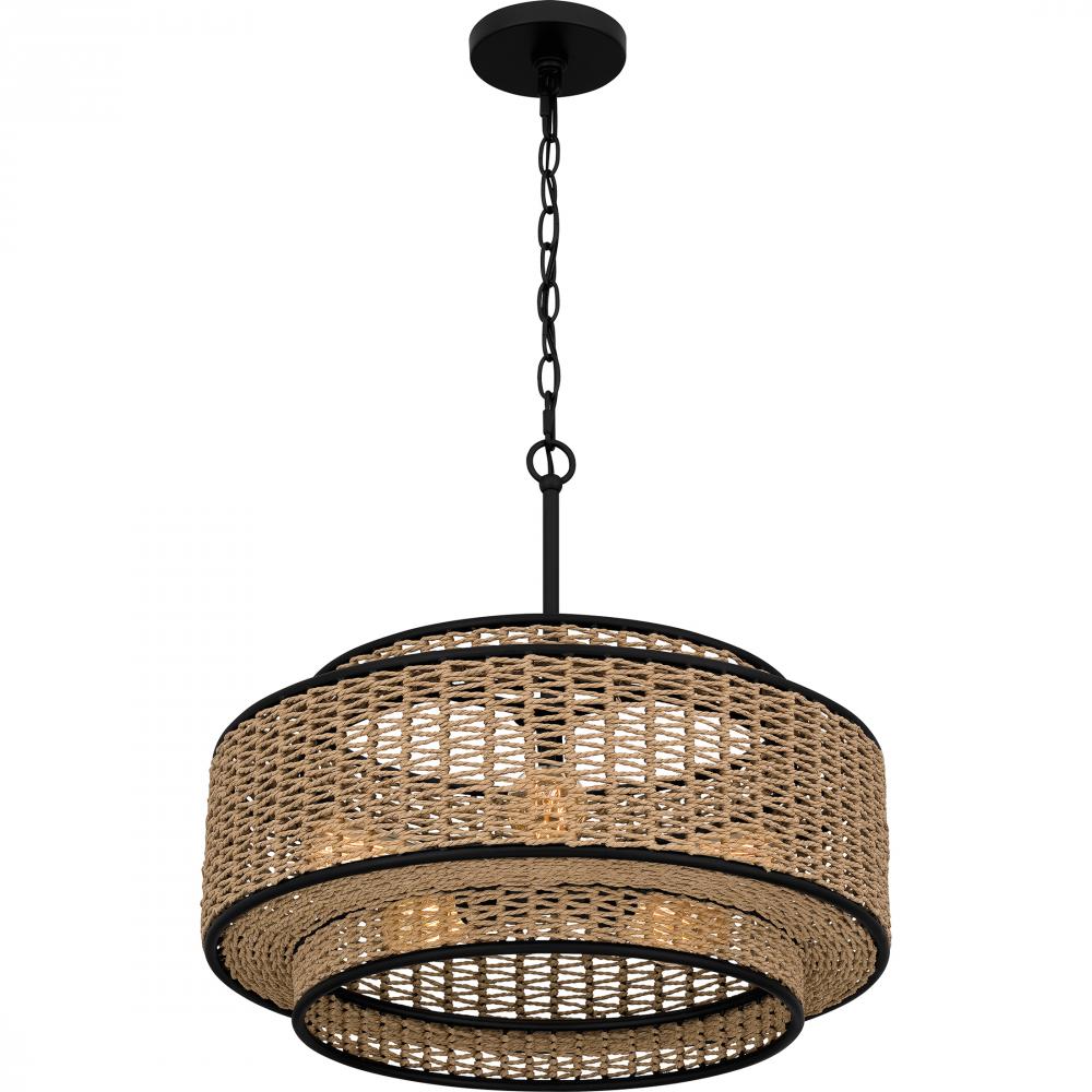 Part of the Quoizel Naturals collection, the Teton pendant spotlights coastal styling and natural elements. The classic drum silhouette is accentuated by casual layers, while the rope shade adds depth and contrast to the otherwise simple frame. Choose from