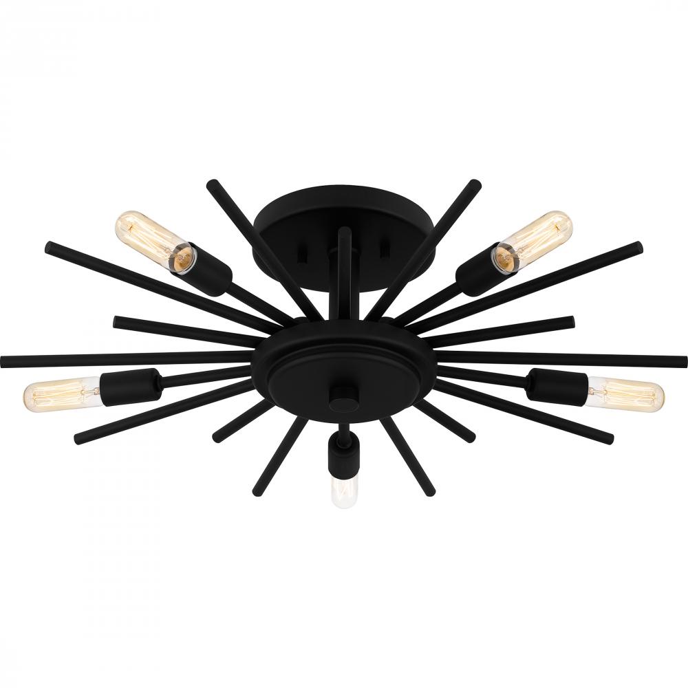 The Mesquite semi-flush mount radiates modern style with its geometric sputnik design and choice of matte black or weathered brass finish. Hang this versatile piece in a variety of spaces including a bedroom, hallway, home office , or living room. Pair wit