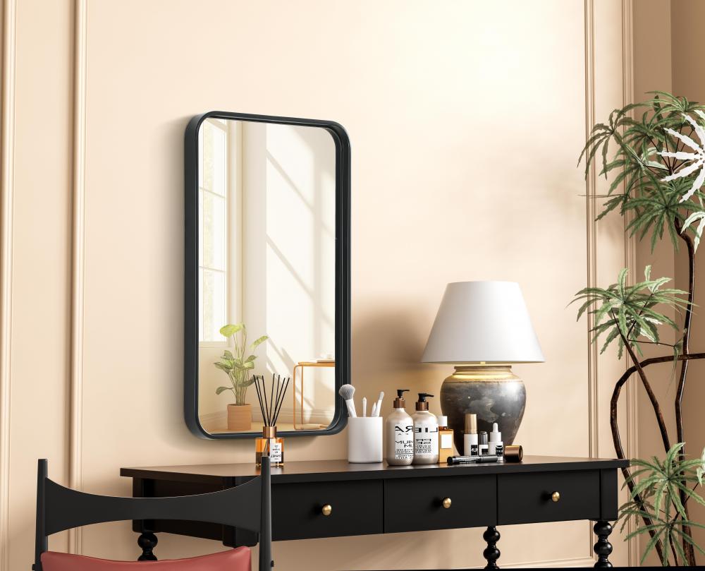 Elevate your home decor with this versatile wall mirror that combines functionality and modern design. Made from a sturdy combination of MDF, iron, and reflective mirror glass, this piece is built to last while adding a polished finish to any room. The extended depth of the frame not only provides a striking dimensional effect but also ensures the mirror’s presence commands attention as a focal point. Whether you're decorating a bedroom, bathroom, or entryway, its diverse shapes—including rectangle and square—offer plenty of options to suit your style. The hand-painted black, brass, or silver finish brings a subtle yet striking touch, complemented by rounded corners for a smooth and contemporary aesthetic. with four metal inset hangers, it's ready to hang vertically or horizontally, ensuring flexibility for any layout. Available in multiple sizes, this mirror is a statement piece that blends seamlessly into both modern and classic spaces.