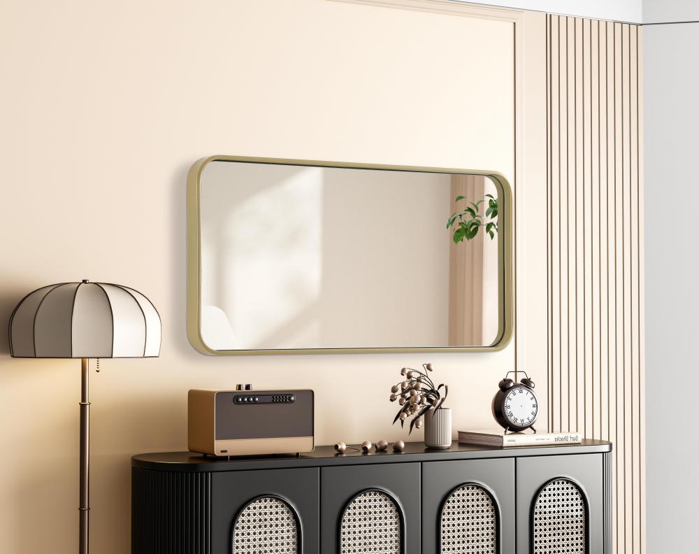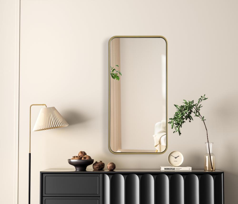 Elevate your home decor with this versatile wall mirror that combines functionality and modern design. Made from a sturdy combination of MDF, iron, and reflective mirror glass, this piece is built to last while adding a polished finish to any room. The extended depth of the frame not only provides a striking dimensional effect but also ensures the mirror’s presence commands attention as a focal point. Whether you're decorating a bedroom, bathroom, or entryway, its diverse shapes—including rectangle and square—offer plenty of options to suit your style. The hand-painted black, brass, or silver finish brings a subtle yet striking touch, complemented by rounded corners for a smooth and contemporary aesthetic. with four metal inset hangers, it's ready to hang vertically or horizontally, ensuring flexibility for any layout. Available in multiple sizes, this mirror is a statement piece that blends seamlessly into both modern and classic spaces.