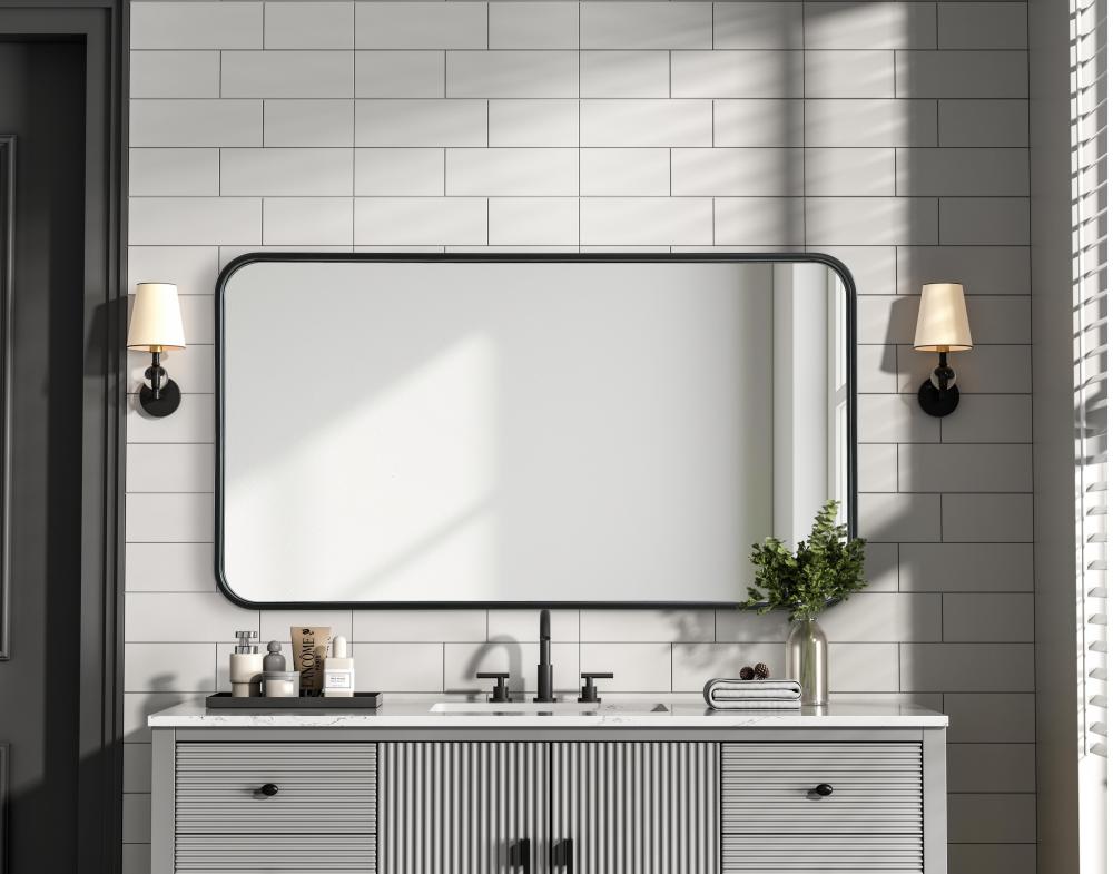 Elevate your home decor with this versatile wall mirror that combines functionality and modern design. Made from a sturdy combination of MDF, iron, and reflective mirror glass, this piece is built to last while adding a polished finish to any room. The extended depth of the frame not only provides a striking dimensional effect but also ensures the mirror’s presence commands attention as a focal point. Whether you're decorating a bedroom, bathroom, or entryway, its diverse shapes—including rectangle and square—offer plenty of options to suit your style. The hand-painted black, brass, or silver finish brings a subtle yet striking touch, complemented by rounded corners for a smooth and contemporary aesthetic. with four metal inset hangers, it's ready to hang vertically or horizontally, ensuring flexibility for any layout. Available in multiple sizes, this mirror is a statement piece that blends seamlessly into both modern and classic spaces.