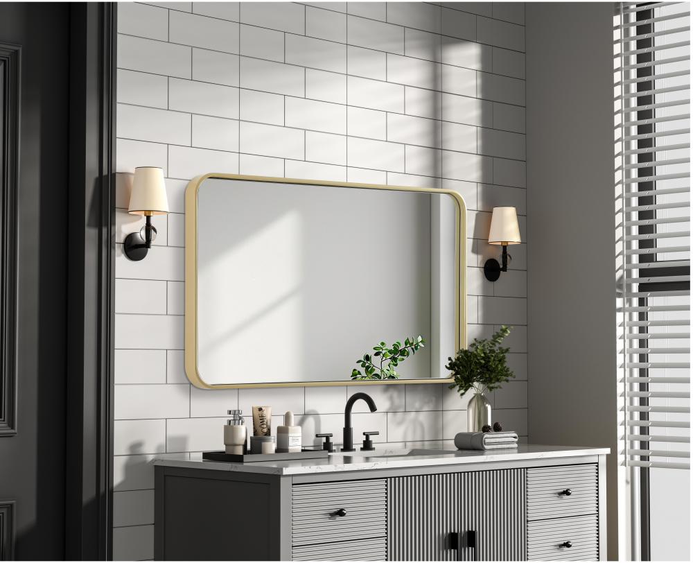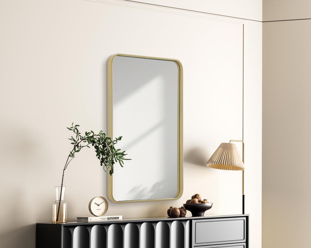 Elevate your home decor with this versatile wall mirror that combines functionality and modern design. Made from a sturdy combination of MDF, iron, and reflective mirror glass, this piece is built to last while adding a polished finish to any room. The extended depth of the frame not only provides a striking dimensional effect but also ensures the mirror’s presence commands attention as a focal point. Whether you're decorating a bedroom, bathroom, or entryway, its diverse shapes—including rectangle and square—offer plenty of options to suit your style. The hand-painted black, brass, or silver finish brings a subtle yet striking touch, complemented by rounded corners for a smooth and contemporary aesthetic. with four metal inset hangers, it's ready to hang vertically or horizontally, ensuring flexibility for any layout. Available in multiple sizes, this mirror is a statement piece that blends seamlessly into both modern and classic spaces.