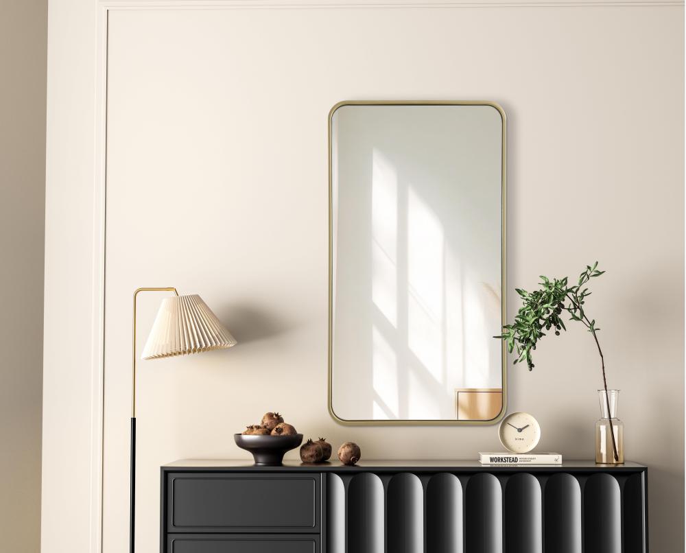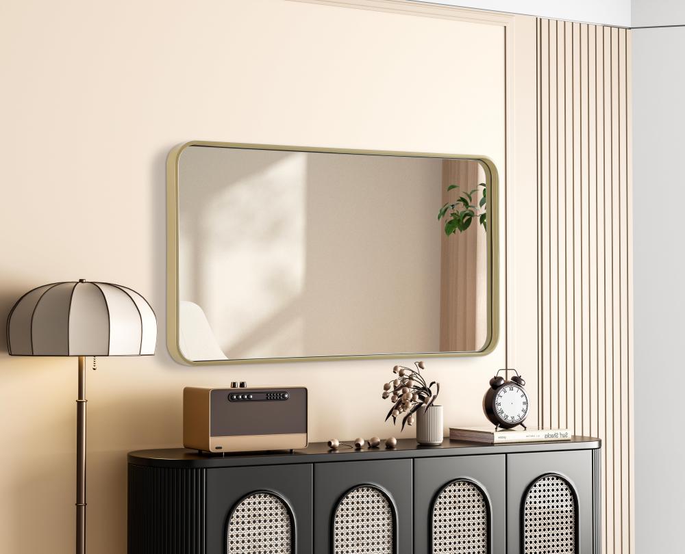Elevate your home decor with this versatile wall mirror that combines functionality and modern design. Made from a sturdy combination of MDF, iron, and reflective mirror glass, this piece is built to last while adding a polished finish to any room. The extended depth of the frame not only provides a striking dimensional effect but also ensures the mirror’s presence commands attention as a focal point. Whether you're decorating a bedroom, bathroom, or entryway, its diverse shapes—including rectangle and square—offer plenty of options to suit your style. The hand-painted black, brass, or silver finish brings a subtle yet striking touch, complemented by rounded corners for a smooth and contemporary aesthetic. with four metal inset hangers, it's ready to hang vertically or horizontally, ensuring flexibility for any layout. Available in multiple sizes, this mirror is a statement piece that blends seamlessly into both modern and classic spaces.