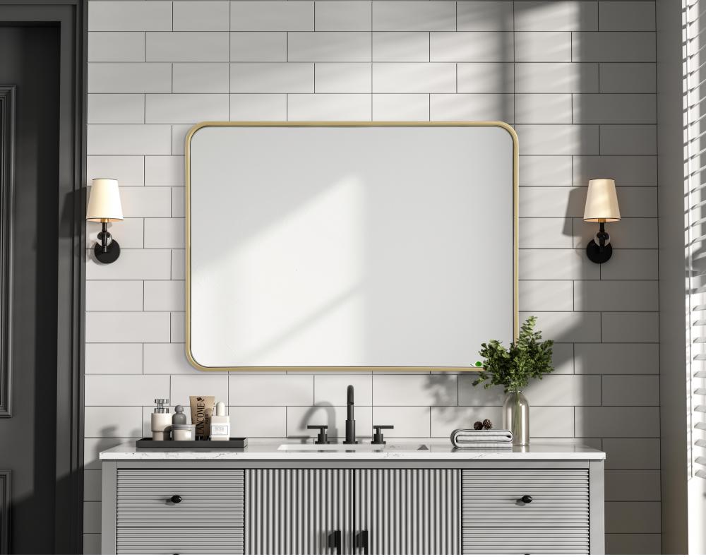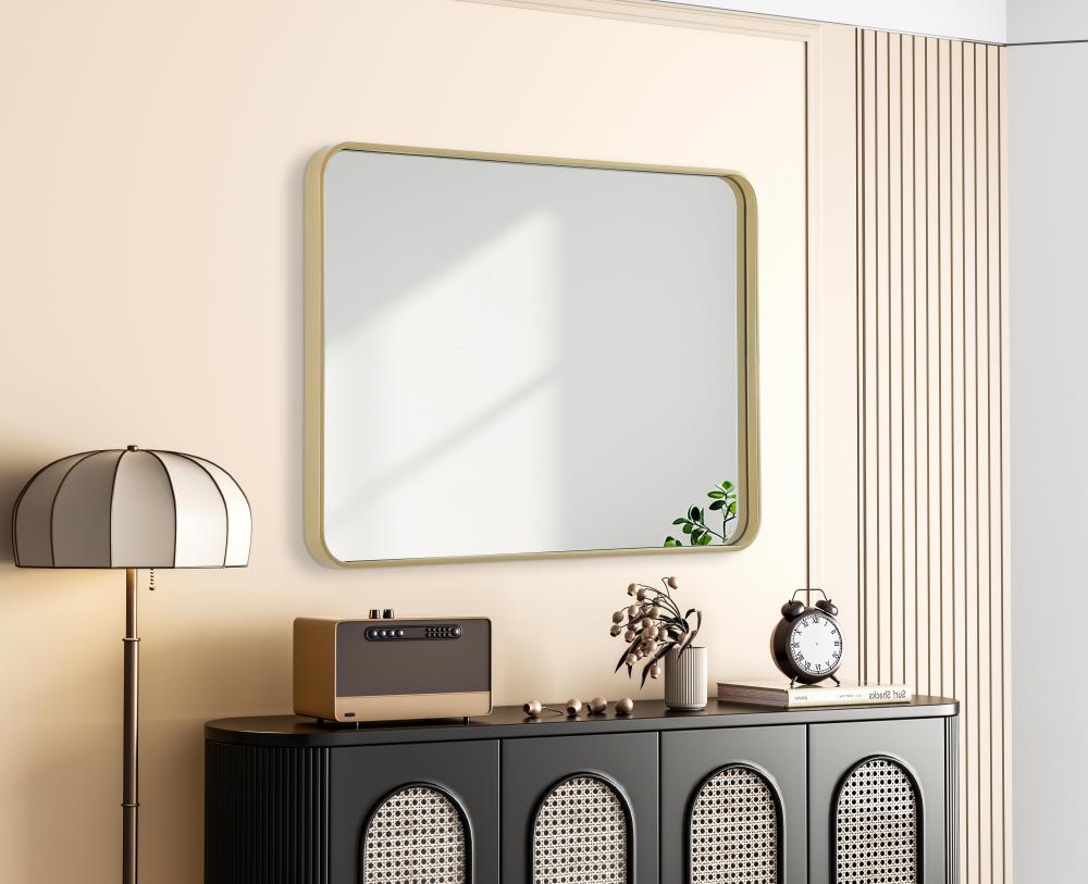 Elevate your home decor with this versatile wall mirror that combines functionality and modern design. Made from a sturdy combination of MDF, iron, and reflective mirror glass, this piece is built to last while adding a polished finish to any room. The extended depth of the frame not only provides a striking dimensional effect but also ensures the mirror’s presence commands attention as a focal point. Whether you're decorating a bedroom, bathroom, or entryway, its diverse shapes—including rectangle and square—offer plenty of options to suit your style. The hand-painted black, brass, or silver finish brings a subtle yet striking touch, complemented by rounded corners for a smooth and contemporary aesthetic. with four metal inset hangers, it's ready to hang vertically or horizontally, ensuring flexibility for any layout. Available in multiple sizes, this mirror is a statement piece that blends seamlessly into both modern and classic spaces.