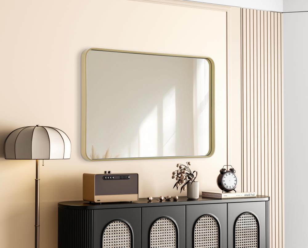 Elevate your home decor with this versatile wall mirror that combines functionality and modern design. Made from a sturdy combination of MDF, iron, and reflective mirror glass, this piece is built to last while adding a polished finish to any room. The extended depth of the frame not only provides a striking dimensional effect but also ensures the mirror’s presence commands attention as a focal point. Whether you're decorating a bedroom, bathroom, or entryway, its diverse shapes—including rectangle and square—offer plenty of options to suit your style. The hand-painted black, brass, or silver finish brings a subtle yet striking touch, complemented by rounded corners for a smooth and contemporary aesthetic. with four metal inset hangers, it's ready to hang vertically or horizontally, ensuring flexibility for any layout. Available in multiple sizes, this mirror is a statement piece that blends seamlessly into both modern and classic spaces.