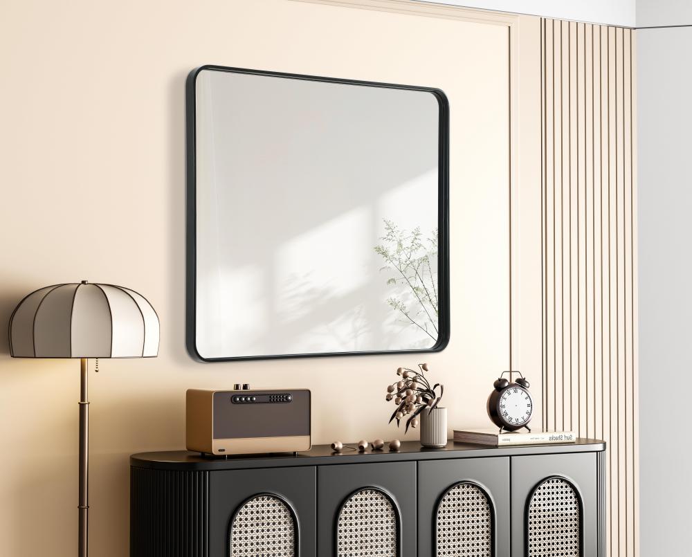 Elevate your home decor with this versatile wall mirror that combines functionality and modern design. Made from a sturdy combination of MDF, iron, and reflective mirror glass, this piece is built to last while adding a polished finish to any room. The extended depth of the frame not only provides a striking dimensional effect but also ensures the mirror’s presence commands attention as a focal point. Whether you're decorating a bedroom, bathroom, or entryway, its diverse shapes—including rectangle and square—offer plenty of options to suit your style. The hand-painted black, brass, or silver finish brings a subtle yet striking touch, complemented by rounded corners for a smooth and contemporary aesthetic. with four metal inset hangers, it's ready to hang vertically or horizontally, ensuring flexibility for any layout. Available in multiple sizes, this mirror is a statement piece that blends seamlessly into both modern and classic spaces.