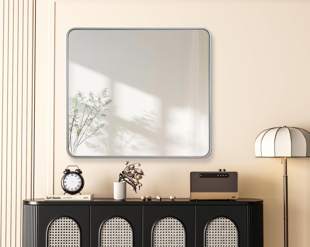 Elevate your home decor with this versatile wall mirror that combines functionality and modern design. Made from a sturdy combination of MDF, iron, and reflective mirror glass, this piece is built to last while adding a polished finish to any room. The extended depth of the frame not only provides a striking dimensional effect but also ensures the mirror’s presence commands attention as a focal point. Whether you're decorating a bedroom, bathroom, or entryway, its diverse shapes—including rectangle and square—offer plenty of options to suit your style. The hand-painted black, brass, or silver finish brings a subtle yet striking touch, complemented by rounded corners for a smooth and contemporary aesthetic. with four metal inset hangers, it's ready to hang vertically or horizontally, ensuring flexibility for any layout. Available in multiple sizes, this mirror is a statement piece that blends seamlessly into both modern and classic spaces.
