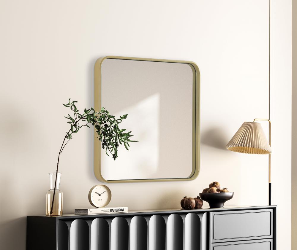 Elevate your home decor with this versatile wall mirror that combines functionality and modern design. Made from a sturdy combination of MDF, iron, and reflective mirror glass, this piece is built to last while adding a polished finish to any room. The extended depth of the frame not only provides a striking dimensional effect but also ensures the mirror’s presence commands attention as a focal point. Whether you're decorating a bedroom, bathroom, or entryway, its diverse shapes—including rectangle and square—offer plenty of options to suit your style. The hand-painted black, brass, or silver finish brings a subtle yet striking touch, complemented by rounded corners for a smooth and contemporary aesthetic. with four metal inset hangers, it's ready to hang vertically or horizontally, ensuring flexibility for any layout. Available in multiple sizes, this mirror is a statement piece that blends seamlessly into both modern and classic spaces.