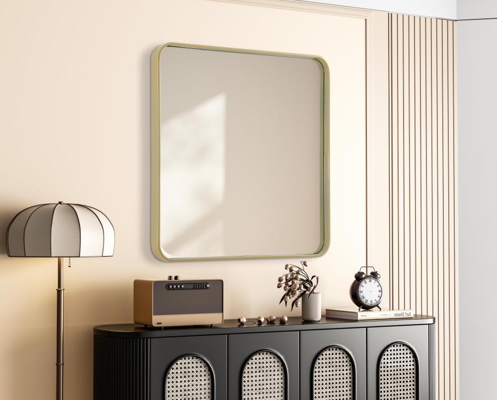 Elevate your home decor with this versatile wall mirror that combines functionality and modern design. Made from a sturdy combination of MDF, iron, and reflective mirror glass, this piece is built to last while adding a polished finish to any room. The extended depth of the frame not only provides a striking dimensional effect but also ensures the mirror’s presence commands attention as a focal point. Whether you're decorating a bedroom, bathroom, or entryway, its diverse shapes—including rectangle and square—offer plenty of options to suit your style. The hand-painted black, brass, or silver finish brings a subtle yet striking touch, complemented by rounded corners for a smooth and contemporary aesthetic. with four metal inset hangers, it's ready to hang vertically or horizontally, ensuring flexibility for any layout. Available in multiple sizes, this mirror is a statement piece that blends seamlessly into both modern and classic spaces.