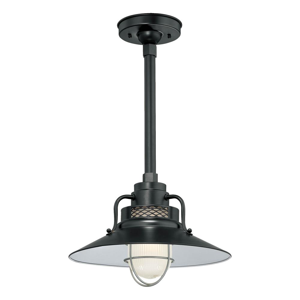 R Series 1-Light Stem Hung Railroad Shade Satin Black