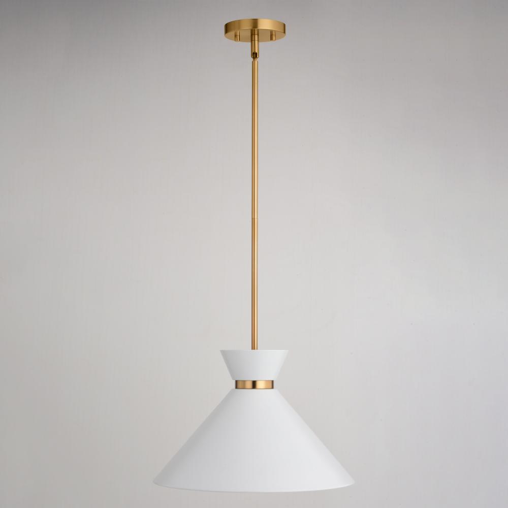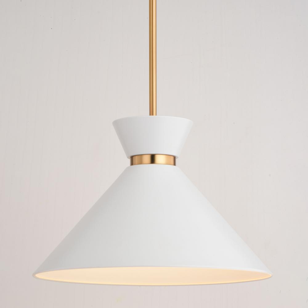 Matte white metal shade with white interior provides bright illumination and a mid-century modern feel