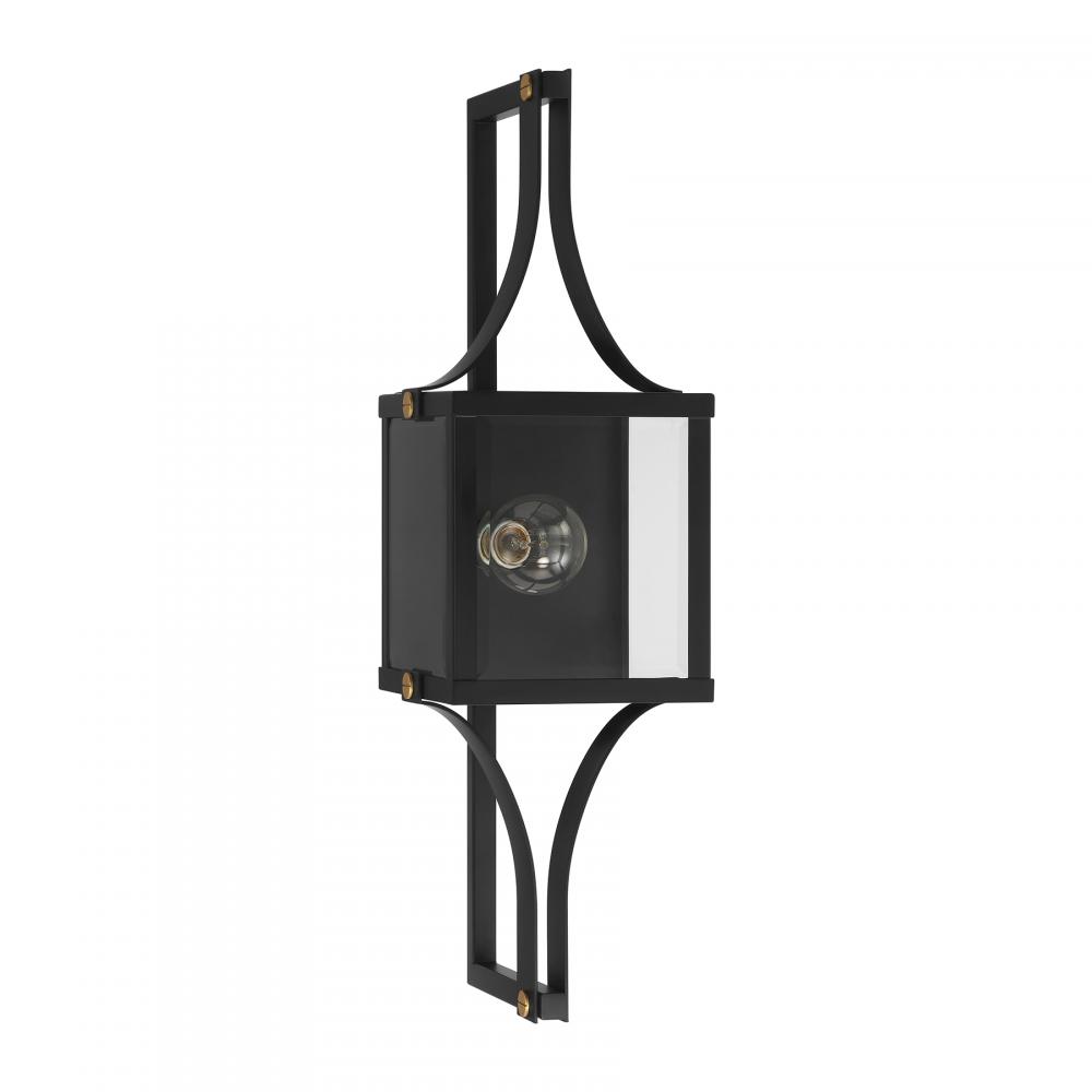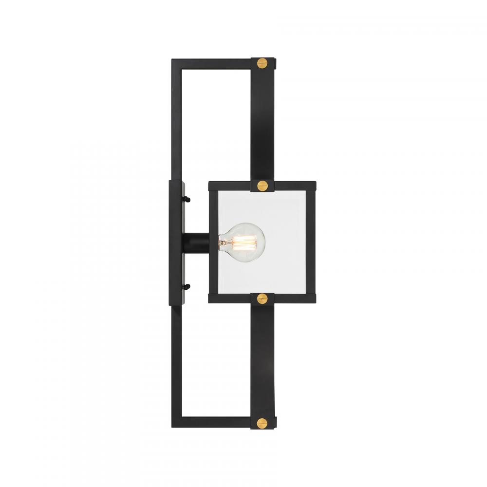 Make your outdoor lighting super fashionable with the Savoy House Raeburn 1-light outdoor wall lantern. A central cube of beveled clear glass is surrounded by a boldly structured frame finished in Matte Black and adorned with thoughtful detailing in Weathered Brushed Brass. Raeburn is 28" in height, 8.5" in width and extends 11" from the wall. Uses one standard size bulb of up to 60 watts. The bulb is not included. Wet area rated.