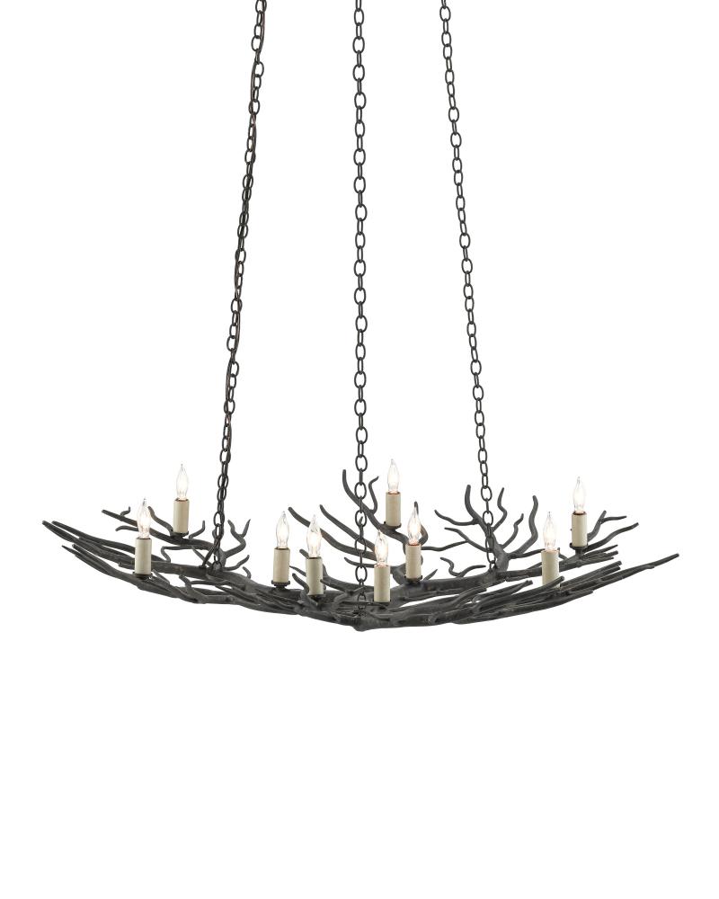 The Rainforest Bronze Small Chandelier has fourteen lights nestled within the hand-forged wrought iron shade of this fixture. The limbs, in a rustic bronze finish, are life-like as they cup the bulbs placed so skillfully on them. Adjustable from 16.5" to 76" with use of included chain/rod kit/cable. If your space calls for a longer drop, additional chain/rods/cable is available for purchase.