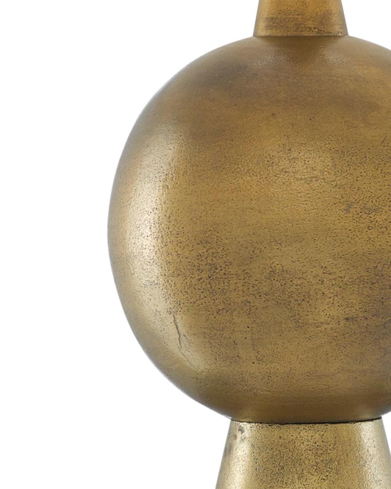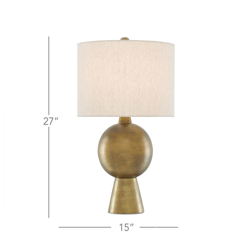Our Rami Brass Table Lamp is made of aluminum with an antique brass finish that brings this gold lamp patina and pays tribute to our finish artisans. A finial in a matching finish fastens the natural flax shade to the body of this lamp.