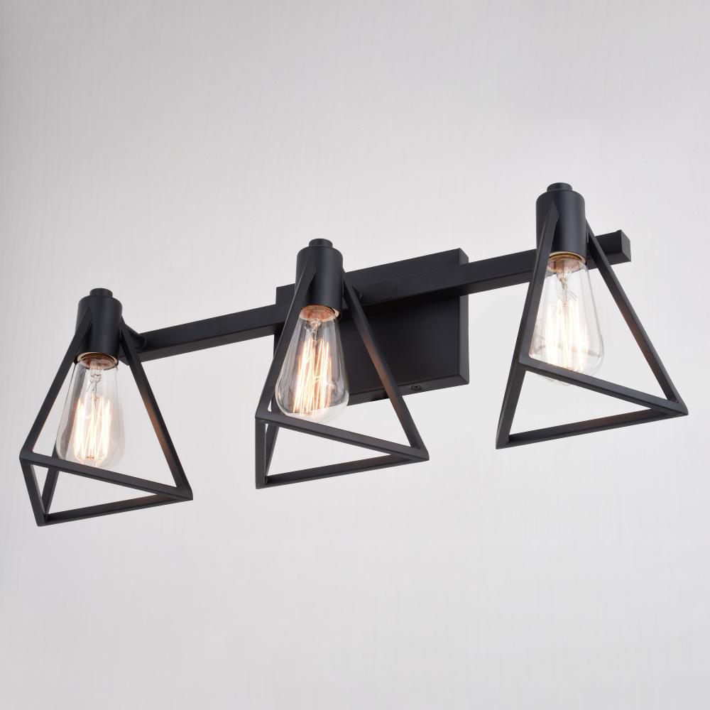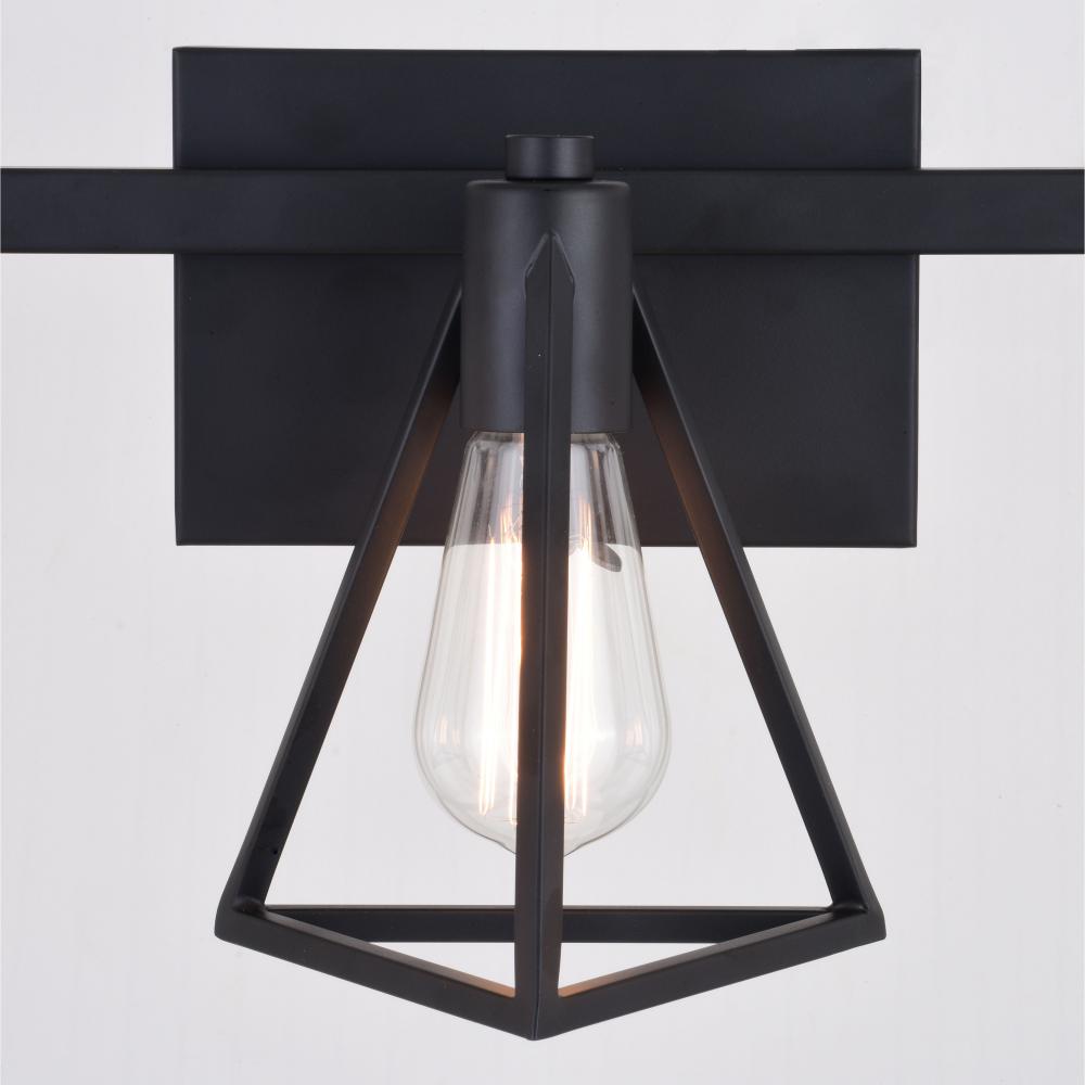 The Ravenna collection is the perfect update to any bath space. The matte black finish and geometric metal cage make a bold statement. The large backplate enables flexibility of installation for an off-center electrical box. Sized right for over medium vanities or as a pair over double sinks. Add this vanity light to any bathroom and you'll see how it becomes the focal point of the space.