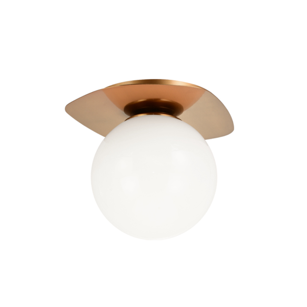 An 80’s inspired design collection. The unusual and unique shape of the canopy is highlighted by the bold contrast of the Opal glass. Razz is a versatile collection - Truly a statement piece. Available in vanity and flush mount.