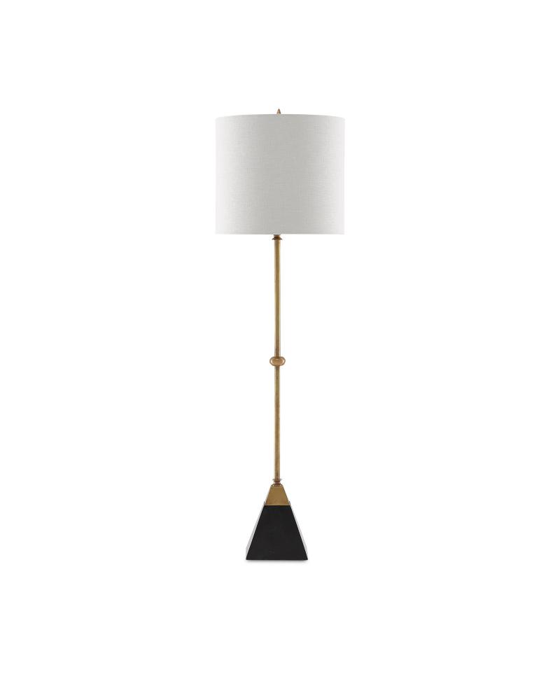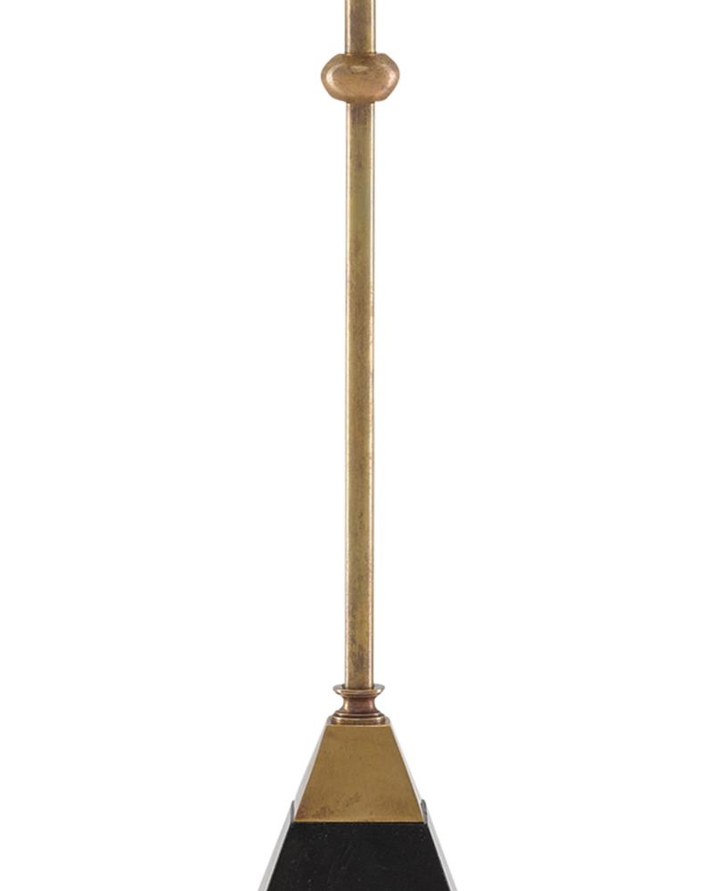 A slender form made of brass with a tapered granite base makes the Recluse Table Lamp apropos for so many design styles. The vintage brass finish on the metal and the pyramid-shaped black granite base combine to anchor the brass lamp topped with a bone linen shade.