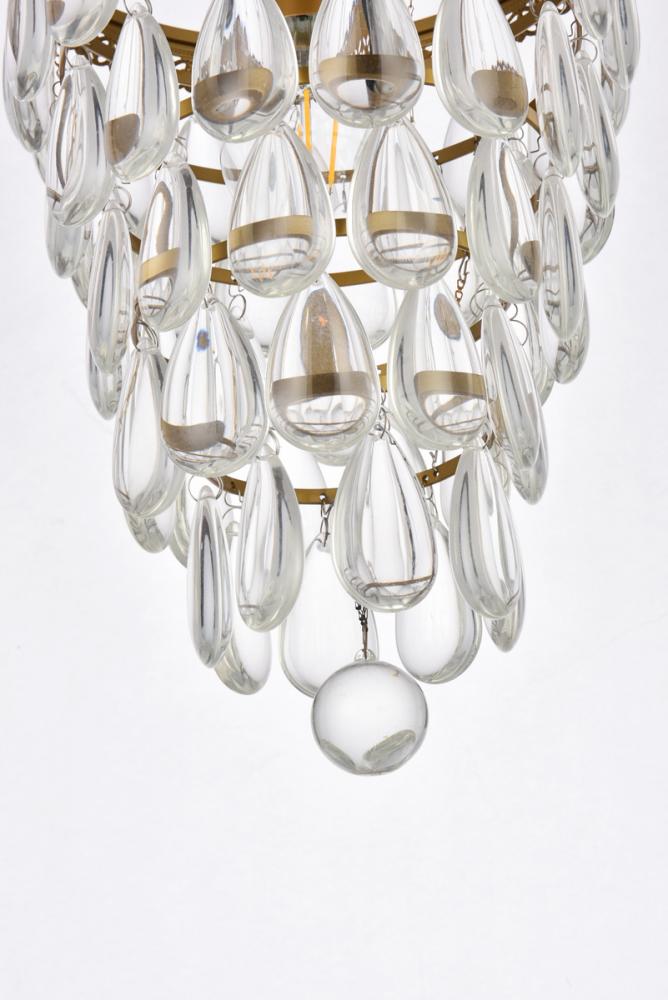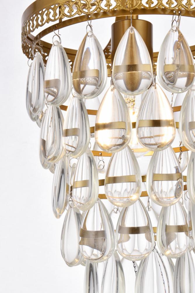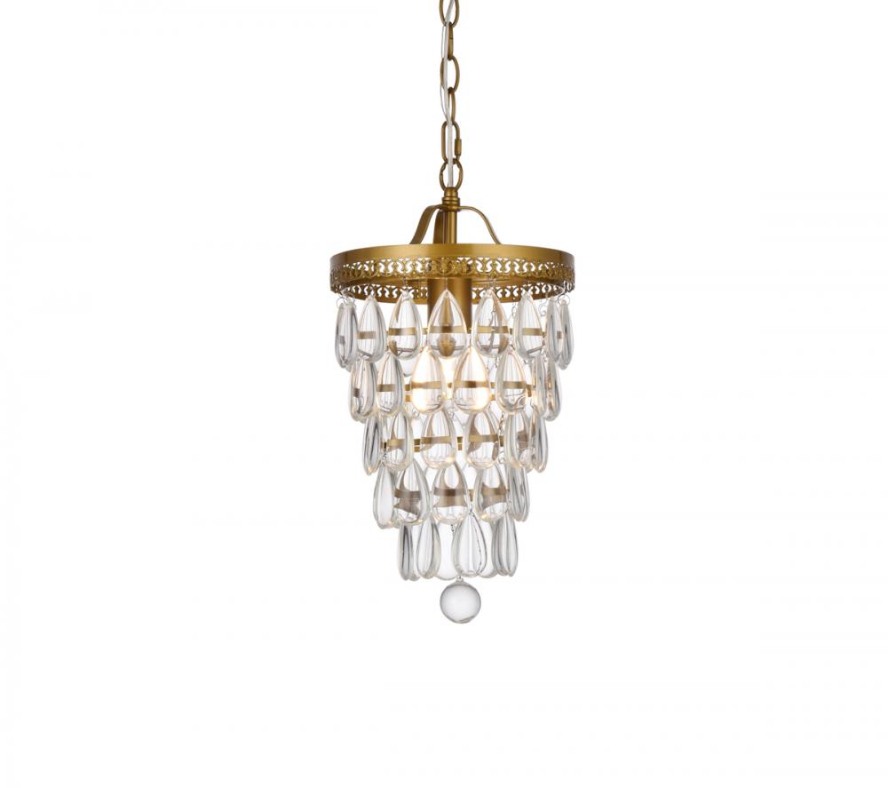 Tiers of royal-cut clear crystals reflect the soft glow of one light