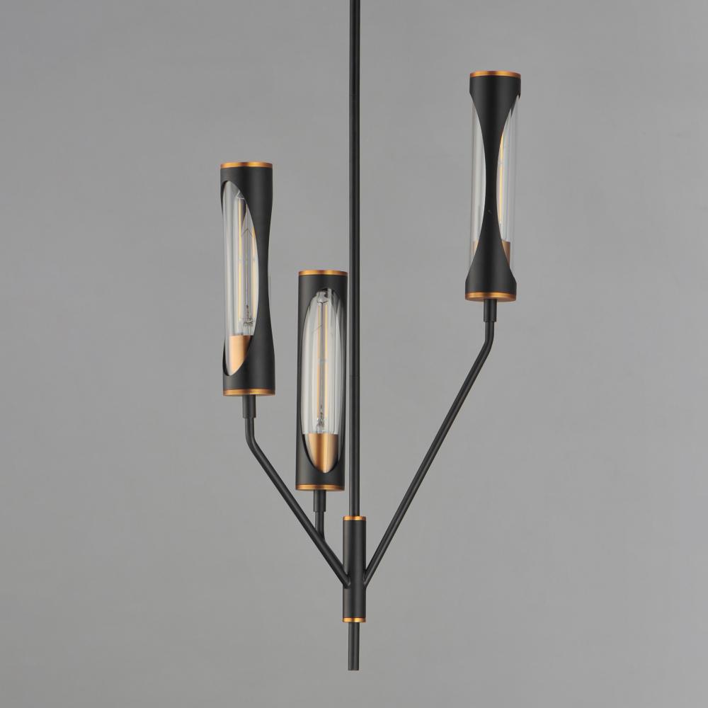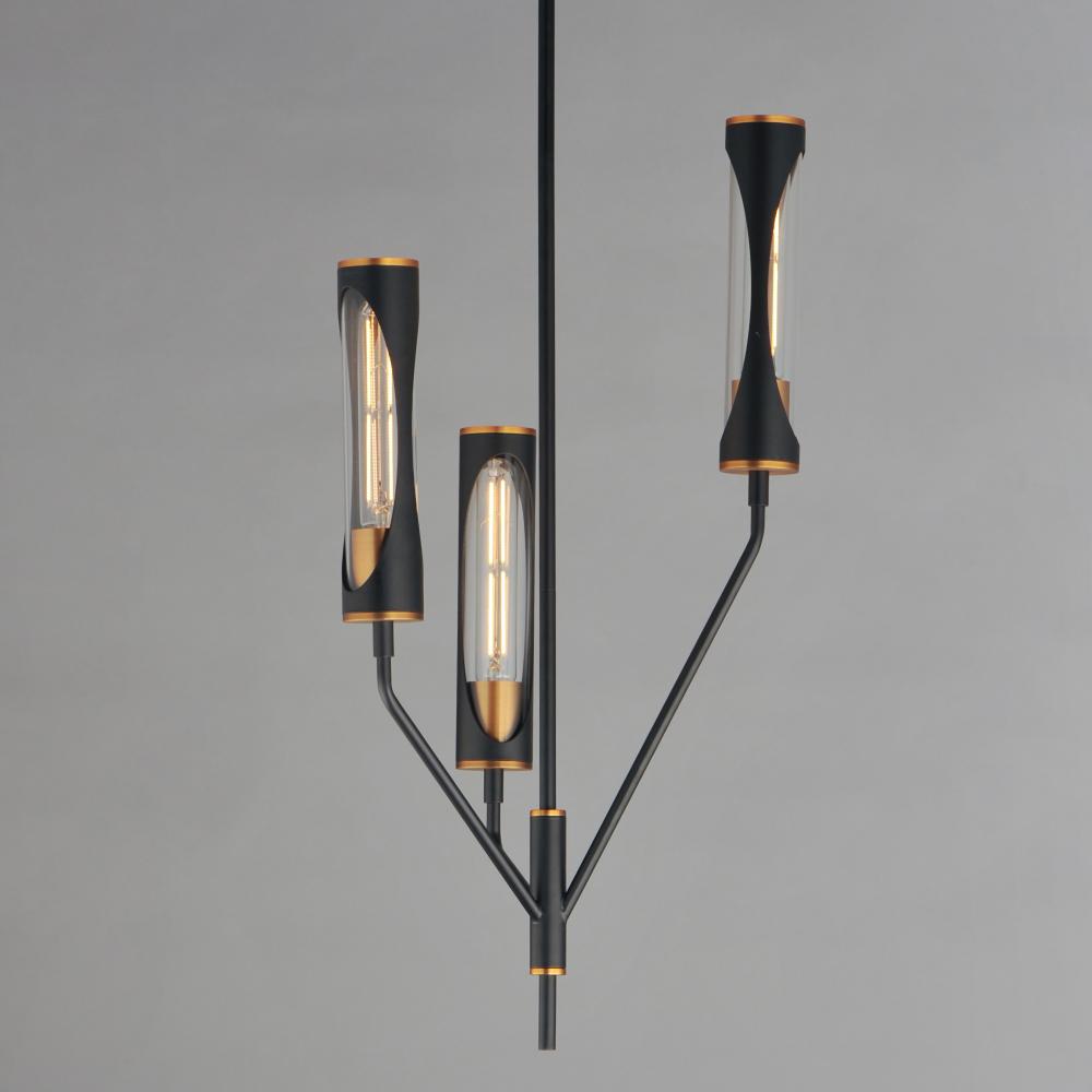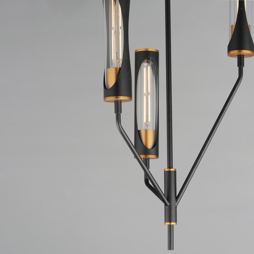 Glamourous and modern, this two-toned lighting collection plays with form and scale. A layered composition of materials, tubular lamps are protected within glass tubes sheathed in metal shades with oval cut-outs that reveal the light source. Chandelier Arm