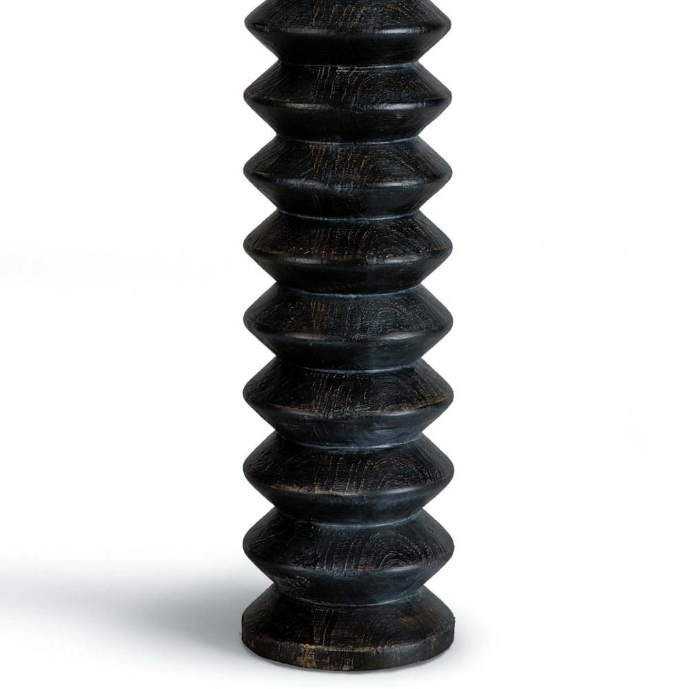 The Accordion is a gorgeous birch table lamp, which instantly draws in the eye with its deeply grooved body, pronounced grain, and ebony finish. A natural linen shade finishes the look with stunning contrast.