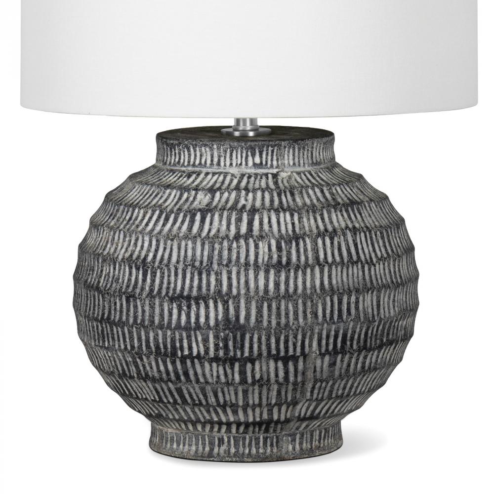 The Adobe Ceramic Table Lamp features hand-scribed chisel marks along with a natural color palette that gives the feeling it was excavated from an archaeological site. The body of the lamp is large in scale, making this a substantial light source for any r