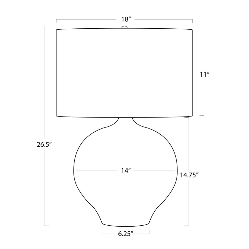 Regina Andrew Arlo Ceramic Table Lamp; Dimensions 18W x 27H x 18D; Uses one maximum 150 Watt E26 Base Bulb (Not Included)