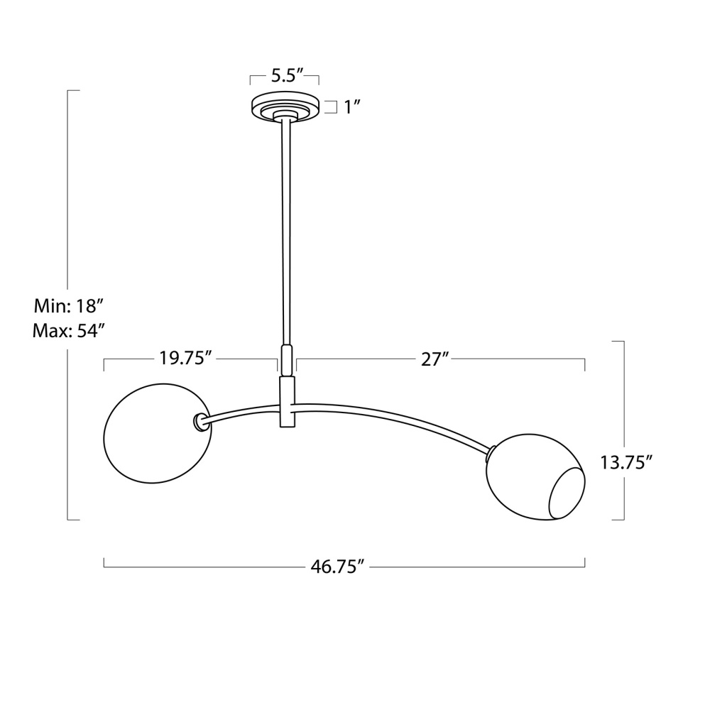 The Artemis Double Pendant masterfully balances simplicity with artisanal craftsmanship, featuring open-ended, alabaster like glass globes elegantly positioned at each end of its mobile-inspired, arched arm in natural brass finish. This striking fixture ex