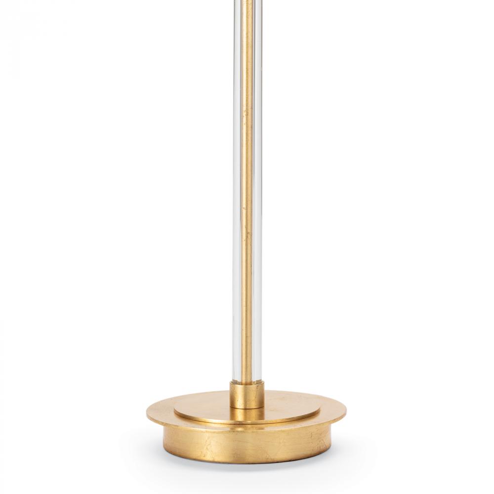A traditional design with a crystal and gold leaf body, the Auburn Buffet Lamp has a tall, slender silhouette that sits elegantly on a metal base. With a crisp, natural linen shade, this sophisticated lamp looks beautiful in a pair to frame a buffet or con