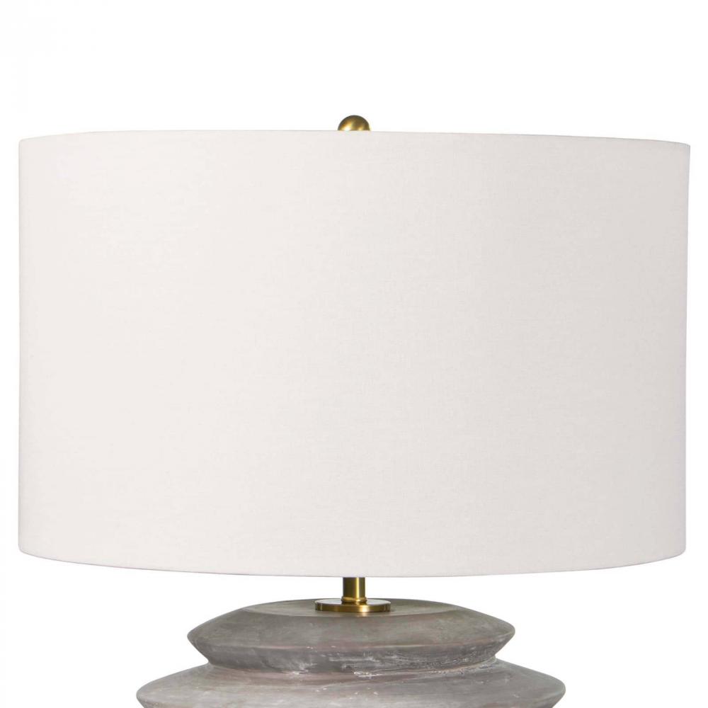 The body of this ceramic table lamp has an earthenware feel, making it stand like a modern heirloom in a living room or bedroom. A natural linen shade makes the whole look more refined. We love the proportions †both balanced and bold.